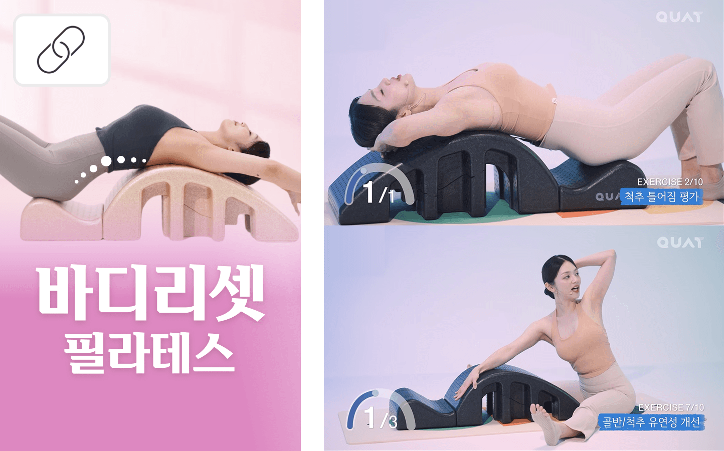 "콰트와 함께 만든 바로폼 필라테스 프로그램은 집에서도 1:1 개인 레슨을 받는 느낌을 줄 수 있도록 구성했어요. 오프라인 센터에서는 강사가 직접 손으로 자세를 교정하는 ‘핸즈온’이 온라인에서는 어렵지만, 바로폼을 활용하면 스스로 척추 교정과 바른 자세를 확인할 수 있어요.